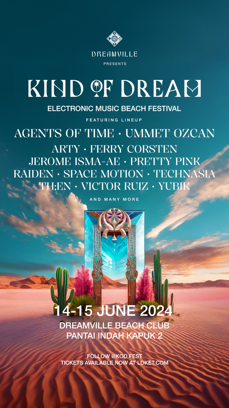 Penampilan DJ Internasional di Day-2 antara lain Ummet Ozcan, Arty, Ferry Corsten, Jerome Isma-Ae, Pretty Pink, Raiden dan juga menghadirkan DJ nasional Onadio Leonardo, P Joana, LTN and Theara. Tiket akan mulai dijual pada 5 April 2024 di www.loket.com dengan harga spesial untuk pembelian awal dan paket VIP eksklusif yang tersedia. Untuk informasi lebih lanjut mengenai harga tiket, akomodasi, dan bagimana menjadi bagian dari mimpi ini, kunjungi situs resmi www.kindofdream.com atau ikuti di Instagram: @kod.fest dan @dreamville.id